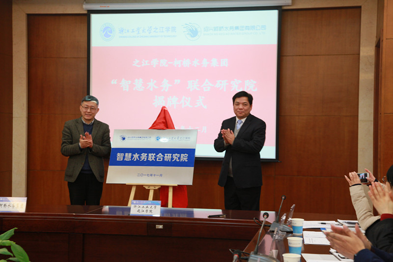 12月6日,柯橋水務(wù)集團(tuán)—浙江工業(yè)大學(xué)之江學(xué)院全面戰(zhàn)略合作簽約暨“智慧水務(wù)”聯(lián)合研究院揭牌儀式在之江學(xué)院行健樓舉行。集團(tuán)董事長周儉、副總經(jīng)理馮梁峰和各部室及下屬各單位負(fù)責(zé)人,之江學(xué)院院長李澎林、副院長王河江等出席儀式。周儉、李澎林一起為“智慧水務(wù)聯(lián)合研究院”揭牌,并分別致辭;馮梁峰、王河江分別代表雙方簽署合作協(xié)議。