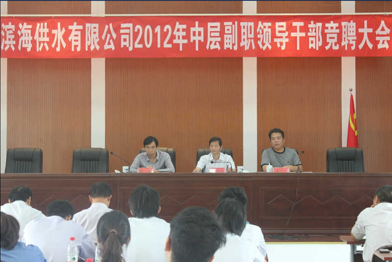 10月9日上午,濱海供水公司在新會議室召開2012年中層副職領(lǐng)導(dǎo)干部競聘大會,公開選拔辦公室、企管部、運(yùn)行部、工程部、營銷部的9個副職崗位。公司中層以上領(lǐng)導(dǎo)干部、職工代表共62人參加會議。此次競聘,堅(jiān)持“擇優(yōu)錄用、德才兼?zhèn)洹⒆⒅貙?shí)績”原則,通過公開報名、資格審查,13名候選人在會上作競聘演講。經(jīng)現(xiàn)場民主測評、領(lǐng)導(dǎo)表決等環(huán)節(jié)的角逐,最終8名工作表現(xiàn)突出、群眾基礎(chǔ)好的優(yōu)秀人才脫穎而出。此次競聘,促進(jìn)了干部之間的相互交流、學(xué)習(xí),同時也使公司更加全面地了解了干部隊(duì)伍的優(yōu)缺點(diǎn),為公司進(jìn)一步選拔人才提供了參考。