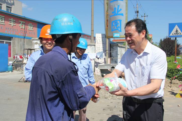 倪董事長與職工一一握手,向他們付出的辛勤勞動(dòng)表示衷心感謝,并囑咐現(xiàn)場管理人員要切實(shí)落實(shí)好高溫天氣的防范措施,科學(xué)安排工作時(shí)間,做好防暑降溫工作,確保員工身心健康。