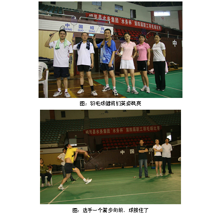 為宣揚(yáng)企業(yè)文化,提倡“快樂(lè)工作、健康工作”,增進(jìn)青年職工的團(tuán)隊(duì)協(xié)作意識(shí),增進(jìn)同事之間的默契度,拉近跨部門業(yè)務(wù)的操作距離,2010年5月22日,水務(wù)集團(tuán)團(tuán)委在紹興市城東體育館舉辦了第四屆“水務(wù)杯”羽毛球比賽。