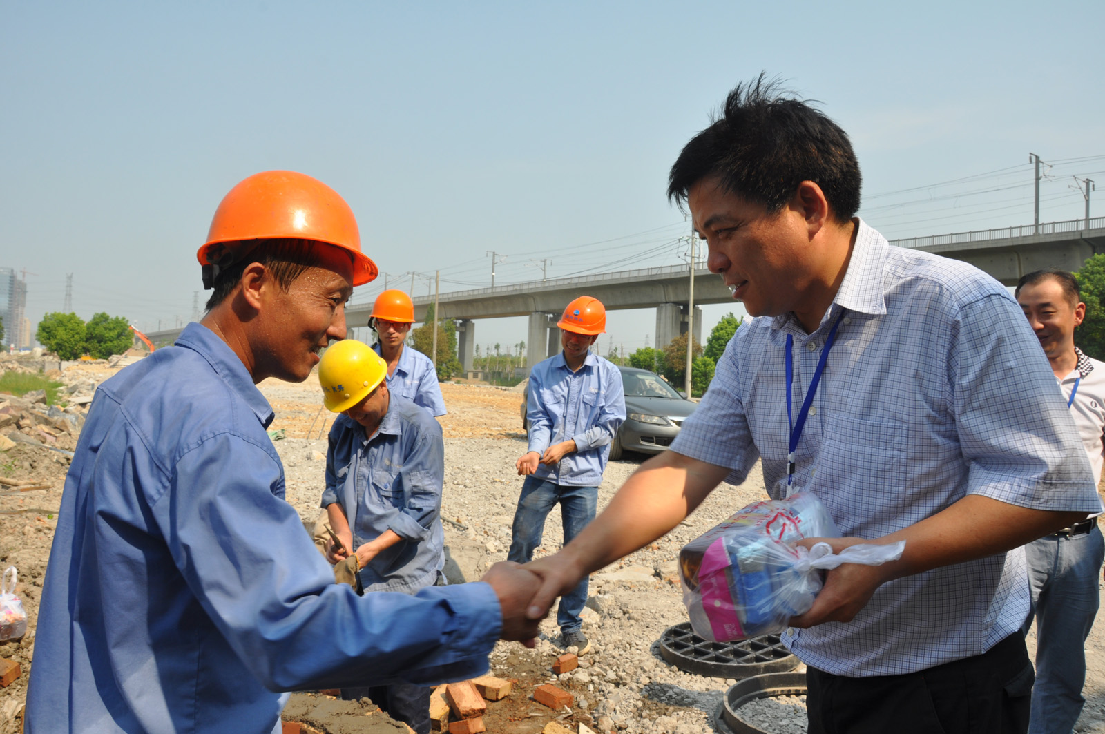 月27日上午,集團公司董事長周儉在公司董事長谷連森、總經理李葉茂等領導的陪同下,前往柯橋城區金昌誠園小區和興華路與鏡水路交叉口配套工程施工現場,慰問堅守崗位的一線職工,為他們送上了消暑飲料及毛巾等防暑用品,并叮囑大家在高溫酷暑下盡量錯時作業,注意做好防暑措施。
