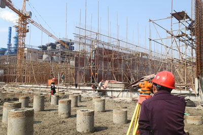 2月26日,江濱20萬噸/日集中預處理二期工程建筑工地上呈現出一片繁忙的景象,100多名施工人員忙碌在工作崗位上。